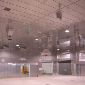 先月、某事務用品メーカー様の工場床をステンレス貼りいたしました。