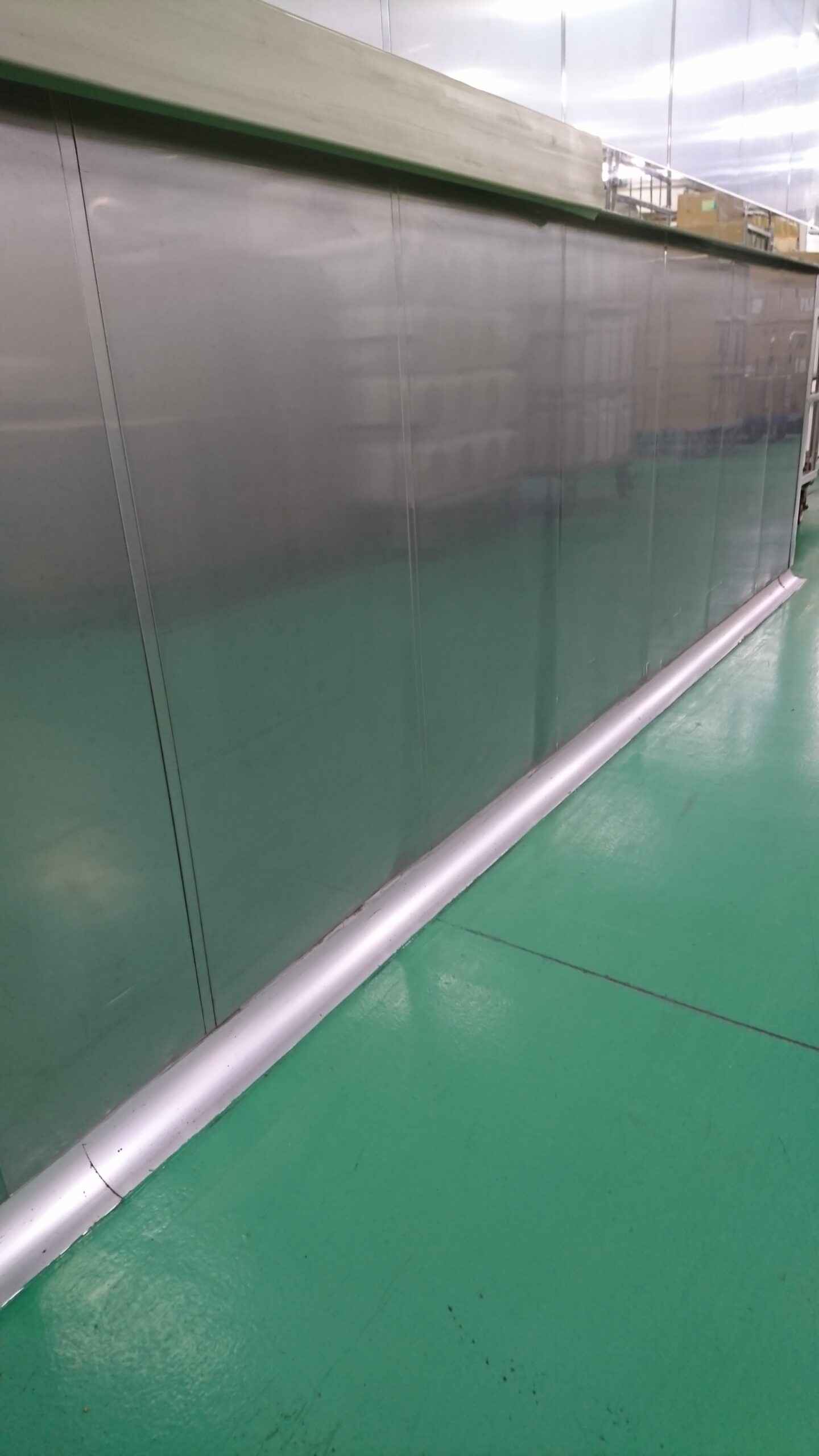 工場の衛生性を保つために「R巾木」、壁面自体を守るために「台車ガード」
